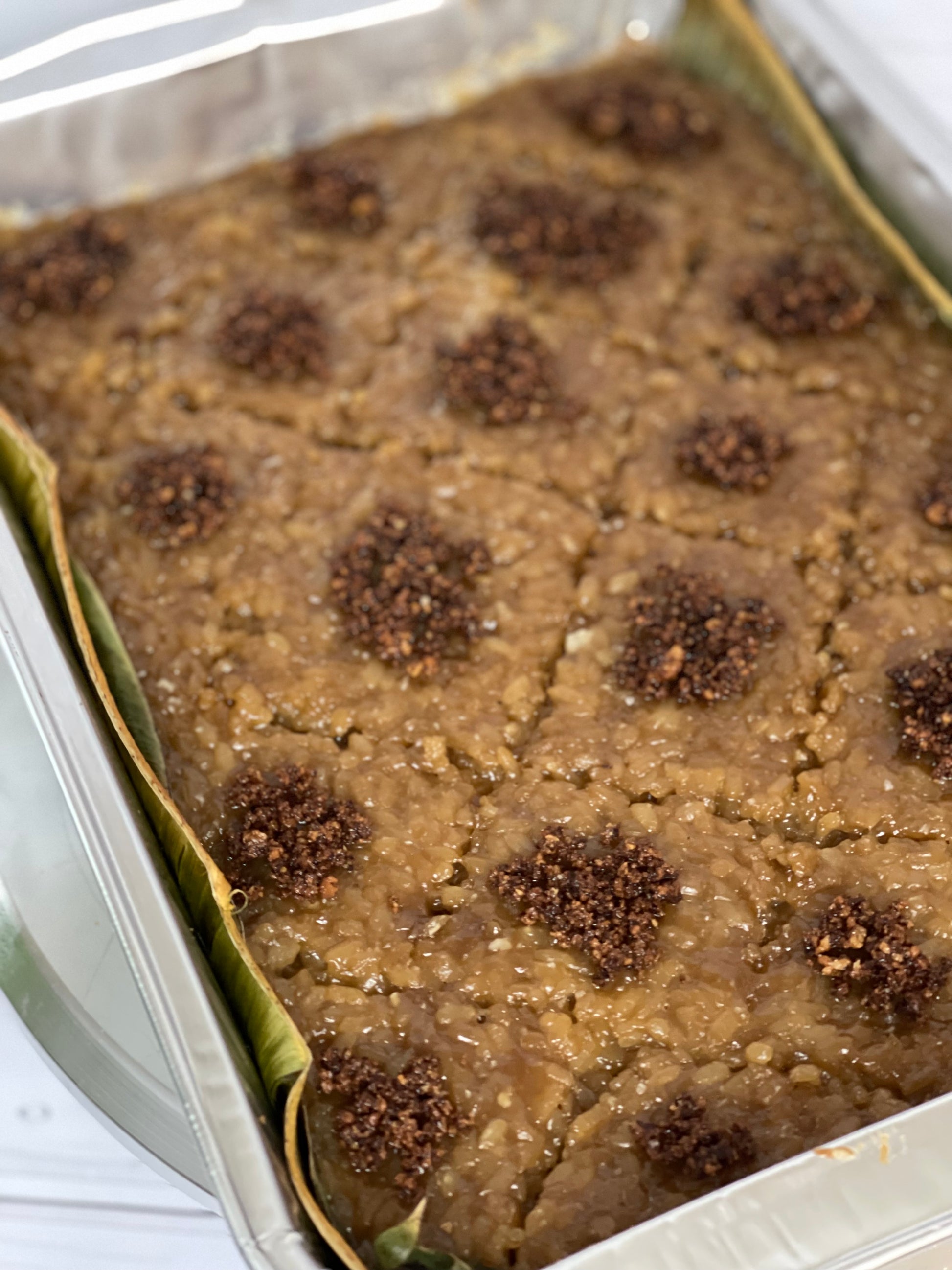 Biko is made from sweet rice a Filipino rice cake made from glutinous rice cooked in coconut milk and brown sugar topped with caramelized coconut milk and coconut custard.