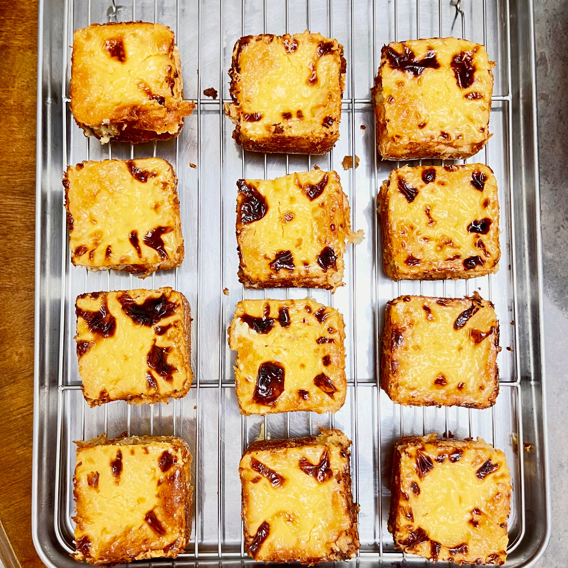 Cassava cake is a Filipino dessert made from grated cassava. Once cooked, the texture of cassava becomes somewhat sticky and slightly translucent. A perfect dessert for special occasions but also great for coffee or tea time.