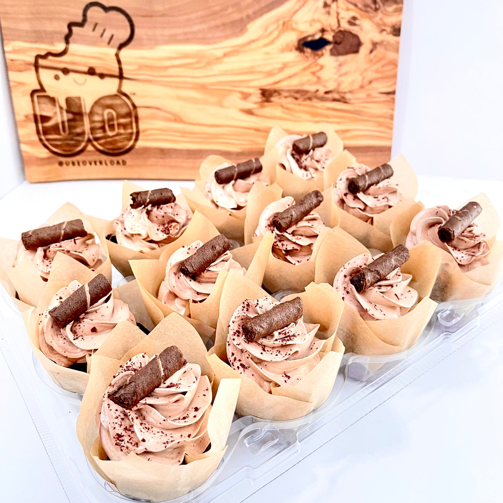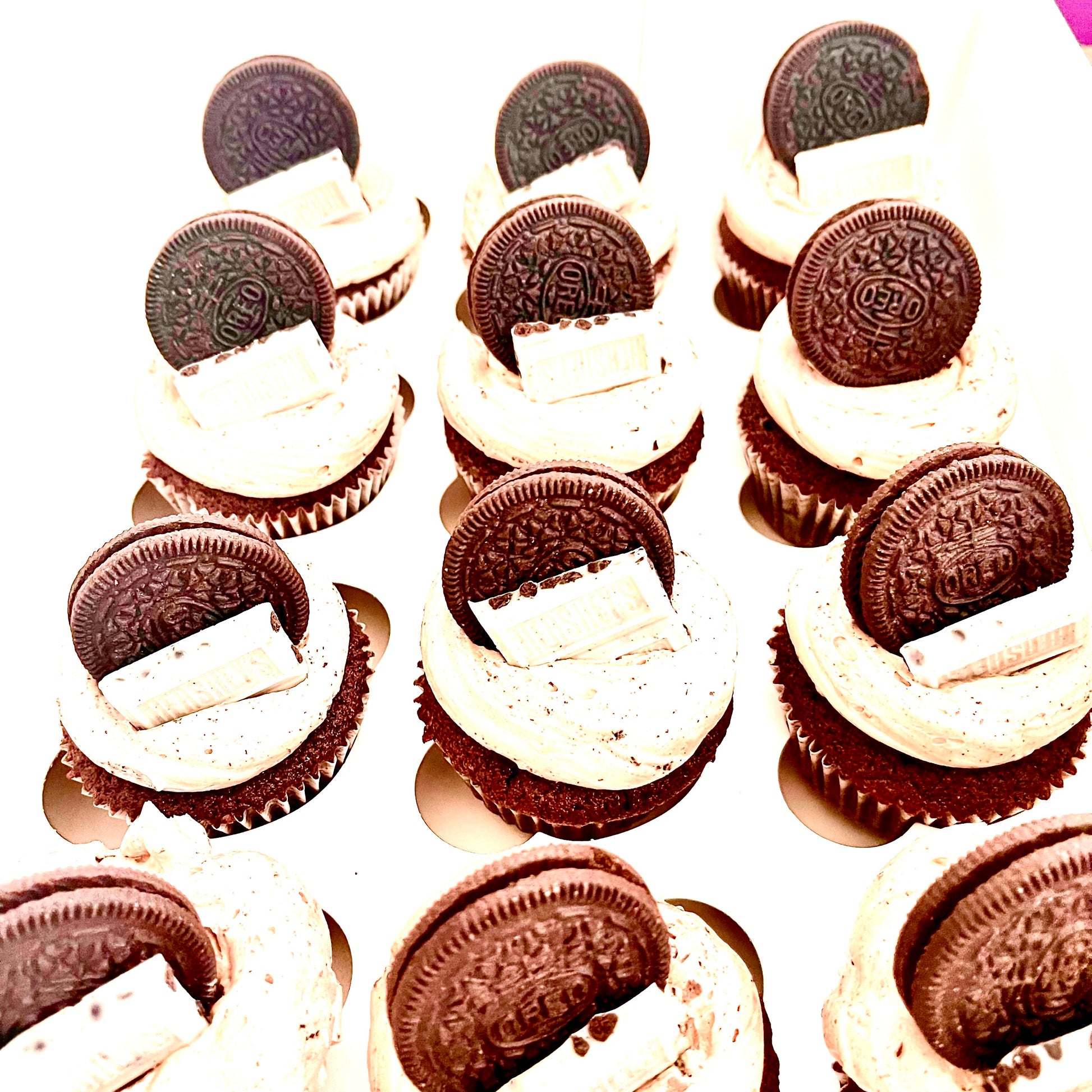 Sold per dozen or half dozen (Biscoff, Oreo, and Ferrero Rocher only sold per dozen for the holidays). We use all swiss meringue buttercream for our cupcakes.